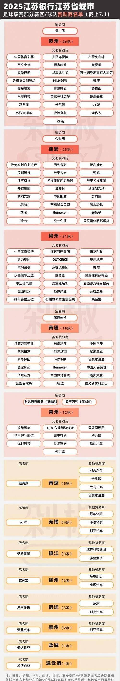 喜力这种平时只赞助超级大赛事的国际品牌也主动进来,洋河和国缘继续在本省酒类老大位置上较劲,双双赞助,伊利、可口可乐、银联、理想、蚂蚁这些巨头扎堆,本土企业占比特别高,江苏经济实力厚实到让人服气。