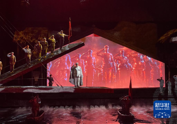 距离纪念馆不远的伟大转折剧场内,大型长征文化沉浸式演艺《伟大转折》同样吸引人。演出打破传统舞台边界,“敌机轰炸”的音效与灯光交织,让广东游客陈曼曼攥紧手心。“看到毛主席在危机关头引领方向,我更懂转折的意义。”她说。